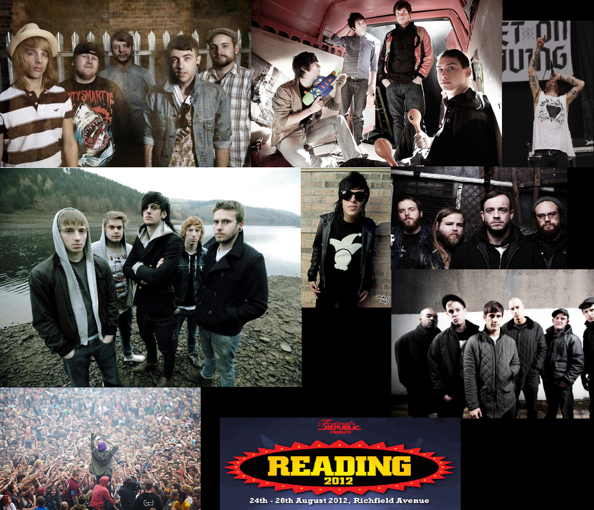 This picture shows the clothing and different bands that could link to the band that I am using, also Reading Festival is well known to host rock bands in its line up which is why I put that on the picture to show what kind of audience would listen to my band. The clothing they wear is all very similar, they all seem to like dark colours e.g. grey and black. Also during concert they wouold wear a supporting bands t shirt to also have a link to the same genre but different artists.